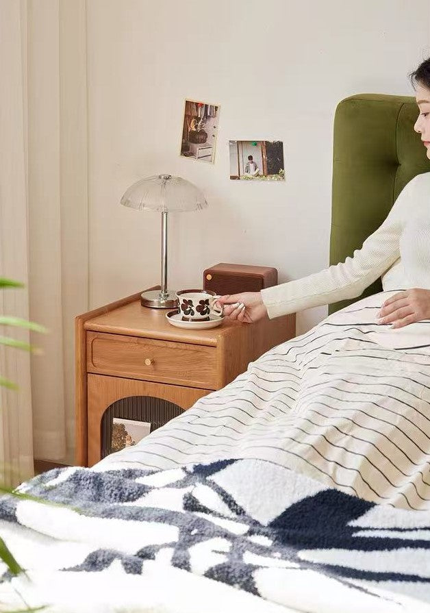 Grounded and architectural, the DOUDING night stand is built from solid cherry wood with a deep natural grain. Its blocky form, low stance, and clean drawer front bring quiet strength and visual weight to contemporary sleeping spaces.