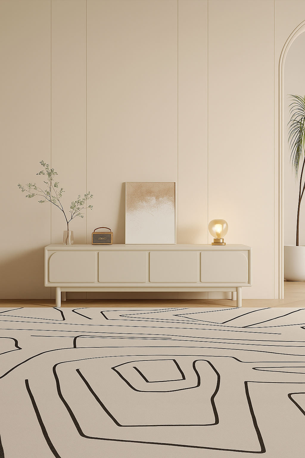 This storage piece features soft‑touch laminate panels, slender legs, and a Scandinavian‑inspired aesthetic. The cabinet's clean fronts and discreet hardware offer a serene, light‑filled look—ideal for minimal, eco‑friendly interiors