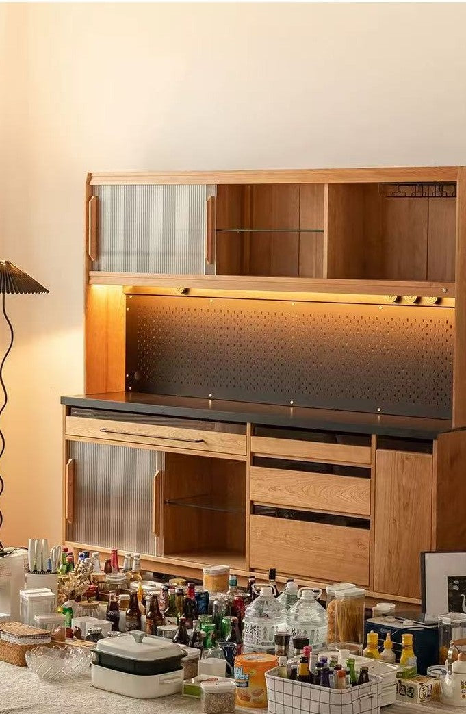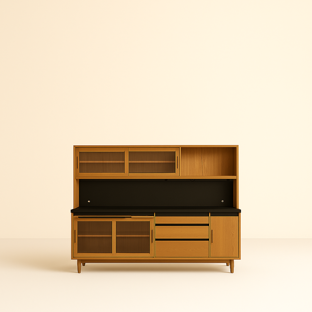 A bold, spacious storage piece crafted from solid wood with clean vertical lines and a natural finish. Designed with multiple adjustable shelves and deep compartments, the ZEUS pantry delivers a premium presence—perfect for modern kitchens seeking elegance and maximum storage. Its tall stature and structured silhouette make it both functional and sculptural.